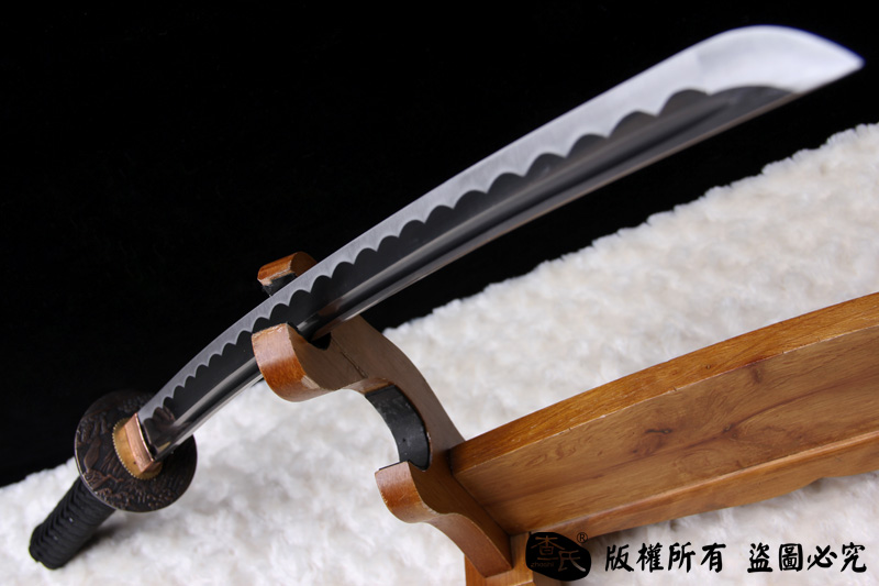【作品简介】 本店商品均实物拍摄,细节清晰,可仔细比较 【作品可选】 专业定做,以质论价.可以根据自己的要求定做 【作品规格】 全长: 80cm左右 , 柄长: 25cm , 刃长: 52cm ,刃宽:3cm , 刃厚: 0.7cm,重量:0.841kg 【作品刃材】 【剑身工艺】 【作品鞘材】 【作品装具】 【作品硬度】 HRC 【作品柄材】 【作品赠品】 锦盒 架子 证书 【其他事项】手工产品,稍有差别,请以实物为准 赠品里面的架子并不是图上的展示的架子.图片架子另外加180