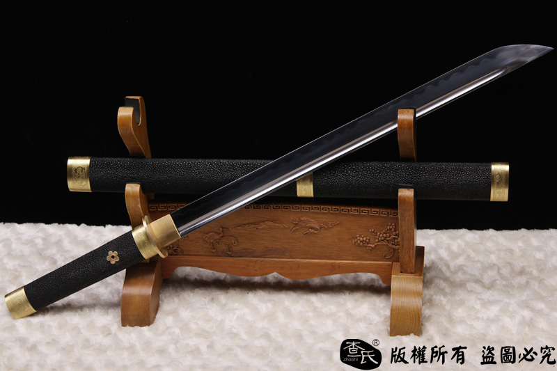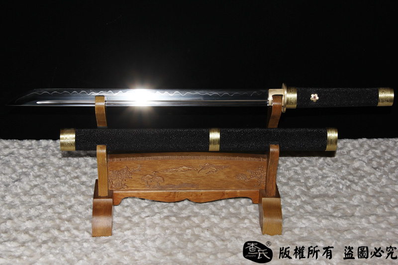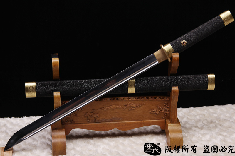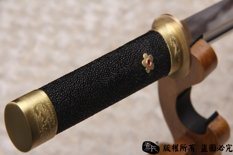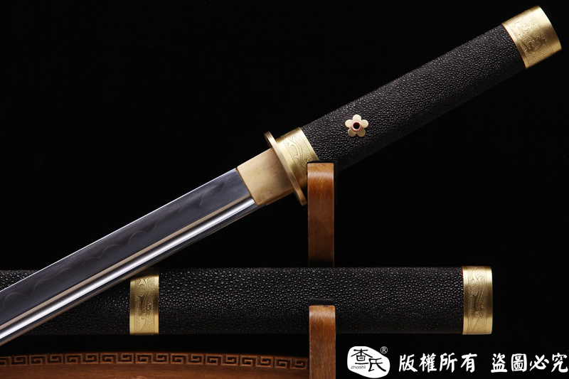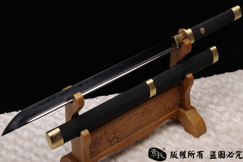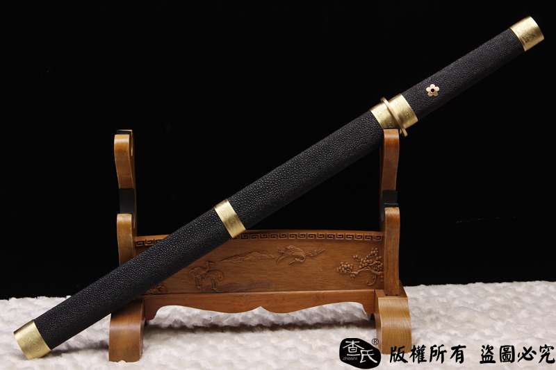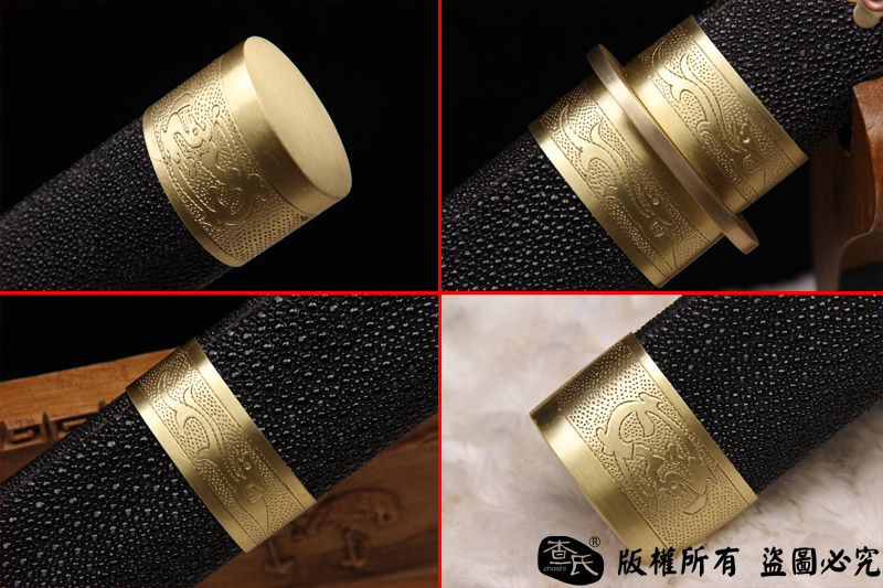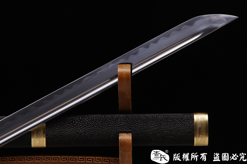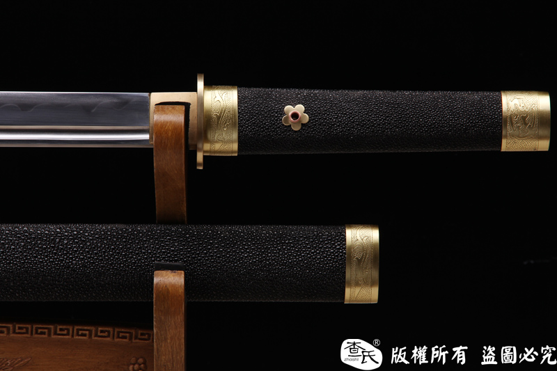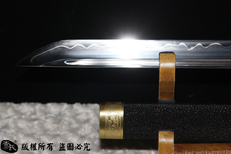 【剑身工艺】 古法全手工打造,古法敷土烧刃热处理 ,古法手工磨【作品鞘材】 名贵珍珠鱼皮