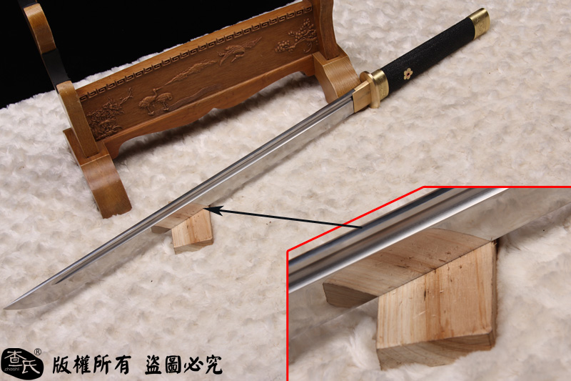 【作品规格】 全长: 78cm左右 , 柄长: 22cm , 刃长: 55cm ,刃宽:3.5cm , 刃厚: 0.8cm,重量:不带鞘 0.9kg左右 带鞘 1.2kg左右