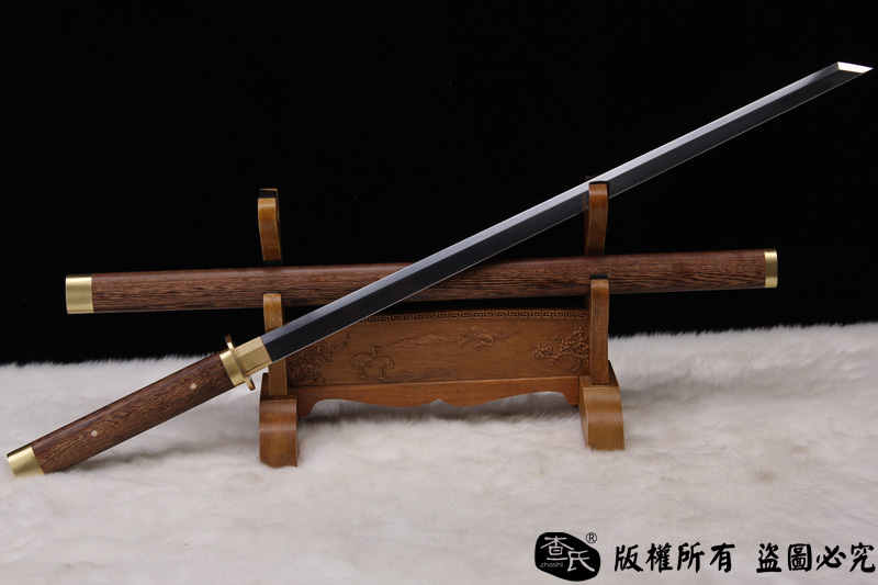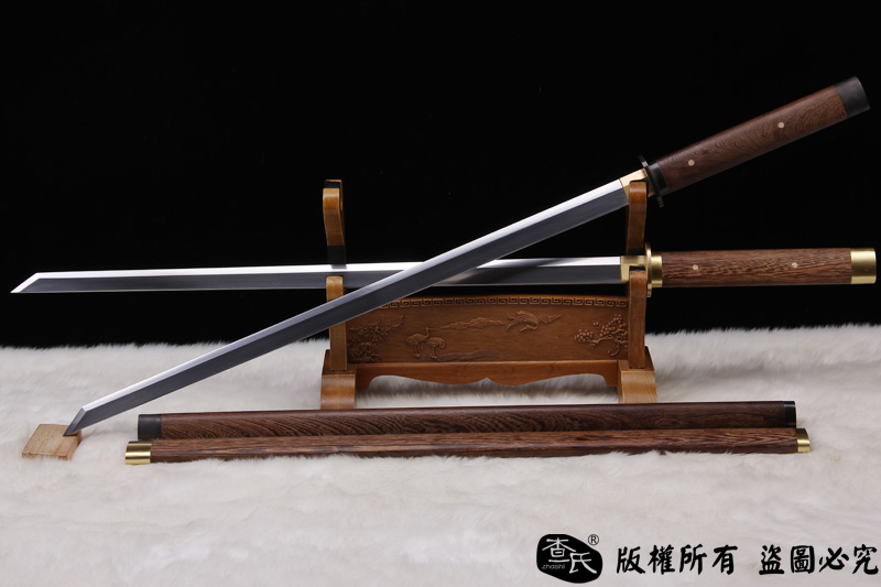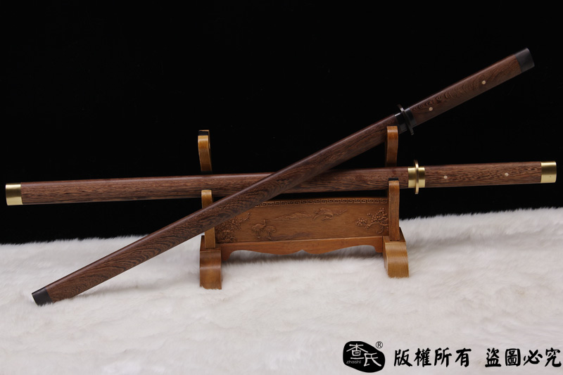 【作品规格】 全长:101cm左右, 柄长:26cm,刃长:73cm,刃宽:3.2cm,刃厚:0.7cm,重量:不带鞘 1.2kg左右 带鞘 1.5kg左右