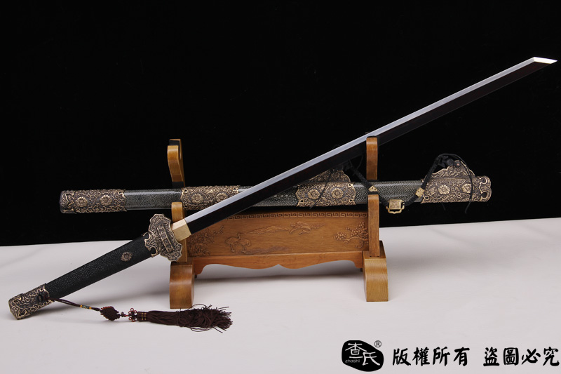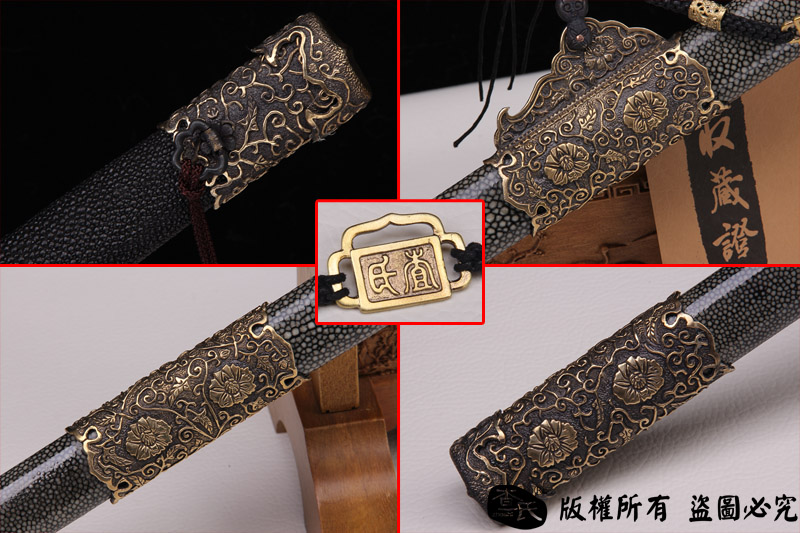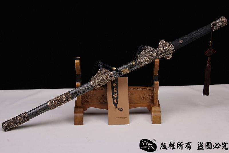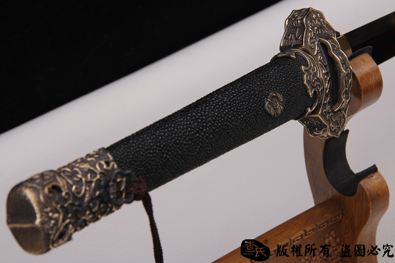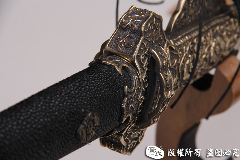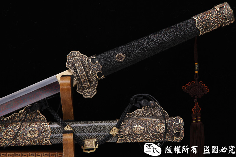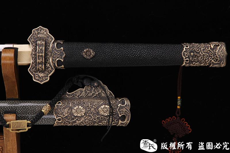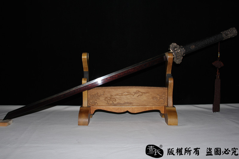 【作品规格】 全长:107cm左右, 柄长:27cm,刃长:72cm,刃宽:3.2cm,刃厚:0.7cm,重量:不带鞘 1.5kg左右 带鞘 2.7kg左右