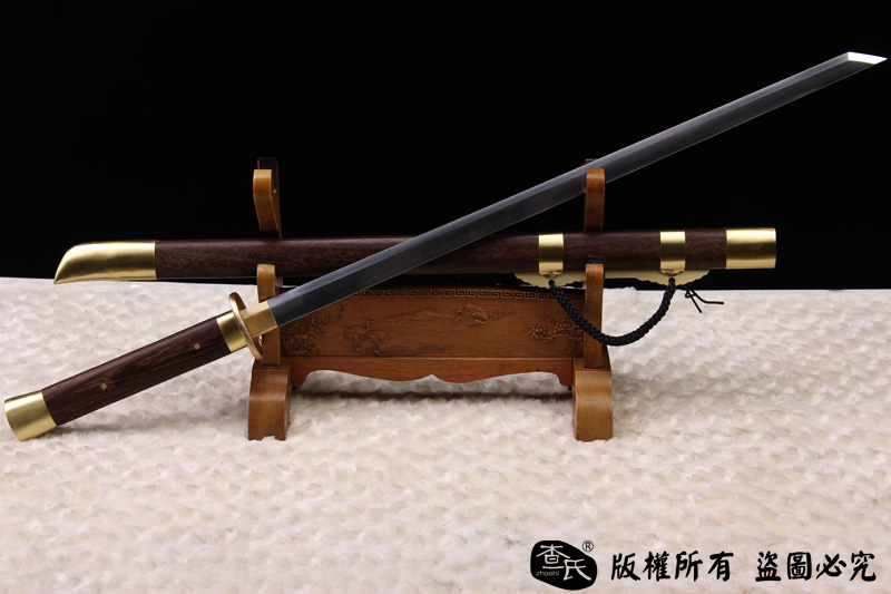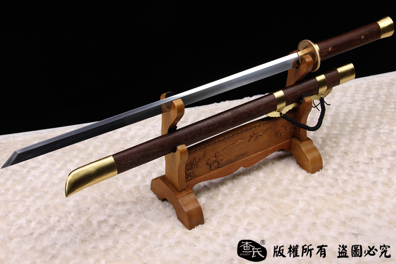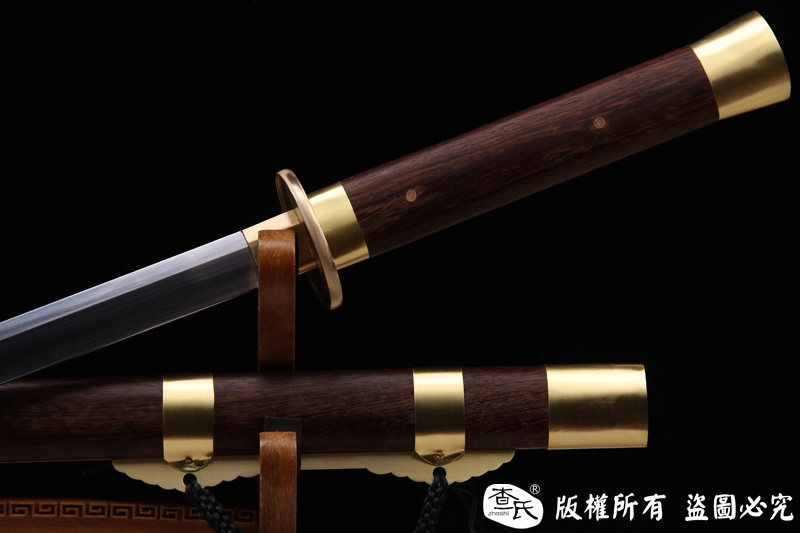 【作品规格】 全长:104cm左右, 柄长:27cm,刃长:72cm,刃宽:3.1cm,刃厚:0.7cm,重量:不带鞘 1.1kg左右 带鞘 1.6kg左右