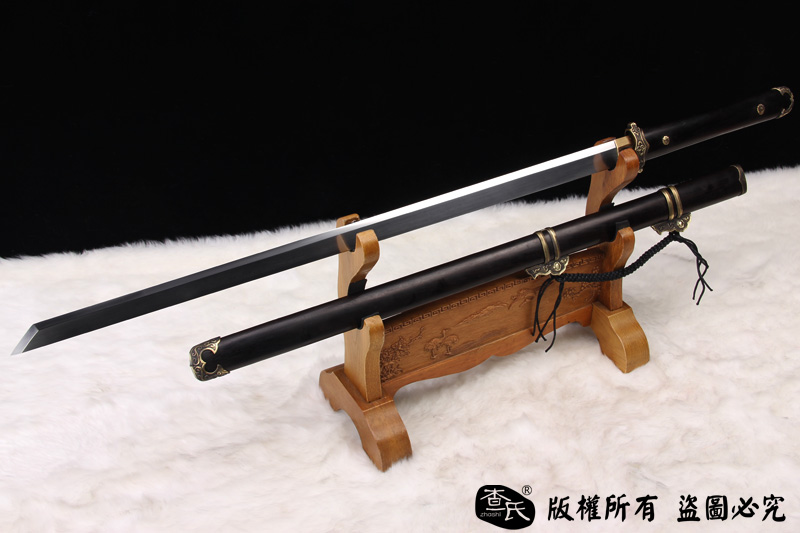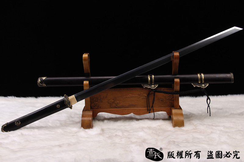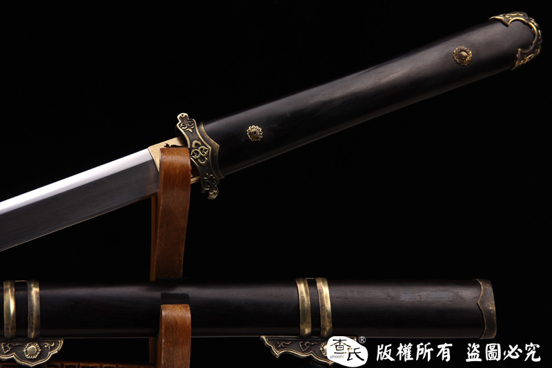【作品规格】 全长:103cm左右, 柄长:26cm,刃长:72cm,刃宽:3.1cm,刃厚:0.7cm,重量:不带鞘 1.1kg左右 带鞘 1.4kg左右
