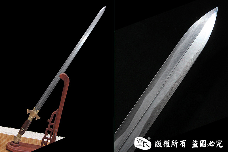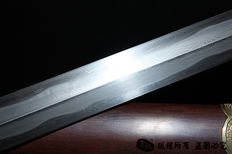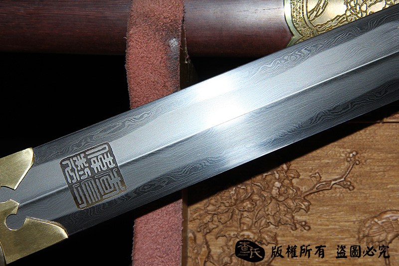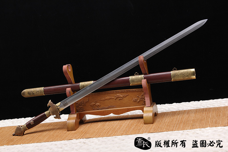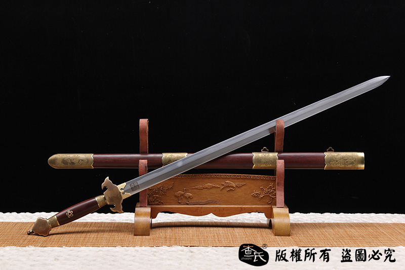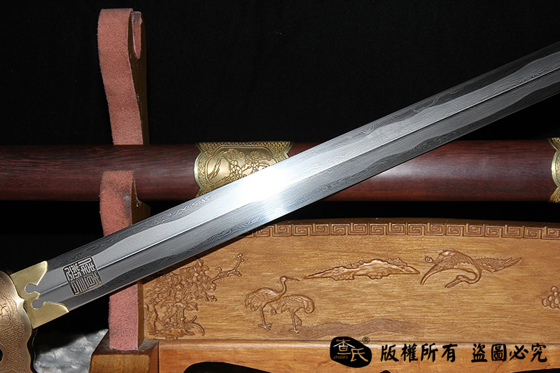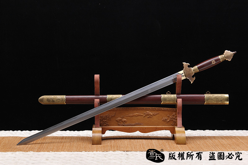 【作品规格】 全长:103cm左右,柄长:20cm,刃长:77cm,刃宽:3.5cm,刃厚:0.8cm,重量:不带鞘1.0kg左右,带鞘1.7kg左右。