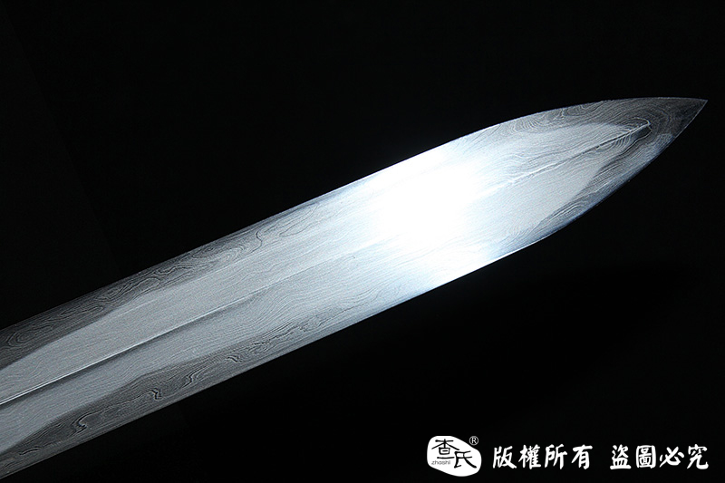 【刃材工艺】 百炼花纹钢手工锻造,古法敷土烧刃热处理,手工精细磨+禾字号研磨,大师作品,性价比高,值得收藏,根部刻字:查长伟制