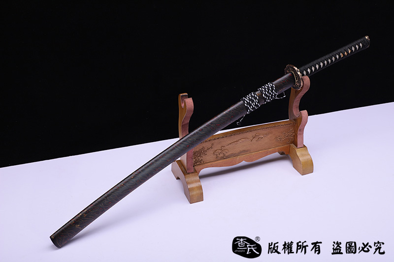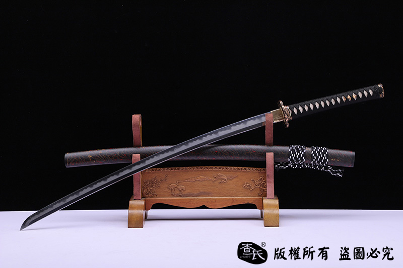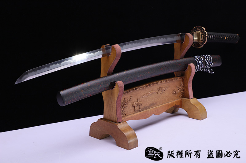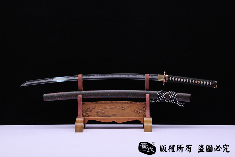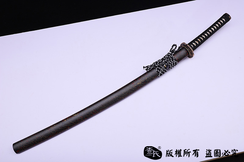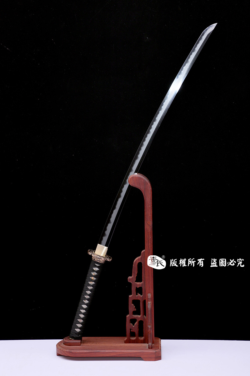 【作品规格】 全长:103cm左右,柄长:26cm,刃长:72cm,刃宽:3.2cm,刃厚:0.7cm,重量:不带鞘1.0kg左右,带鞘1.3kg左右。