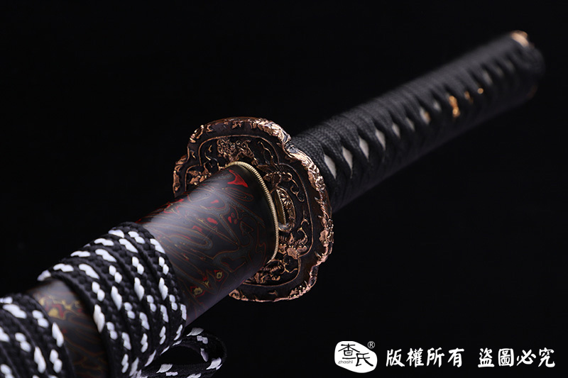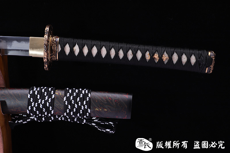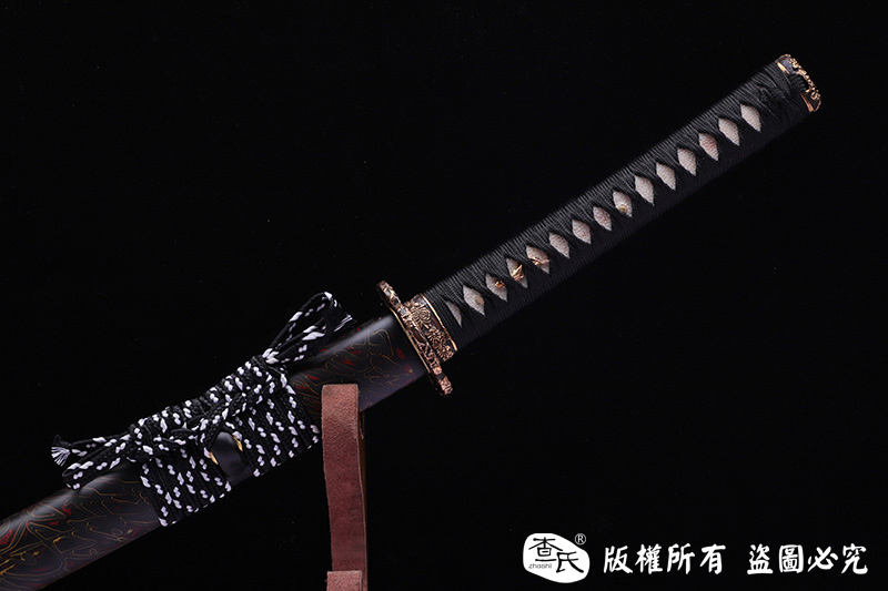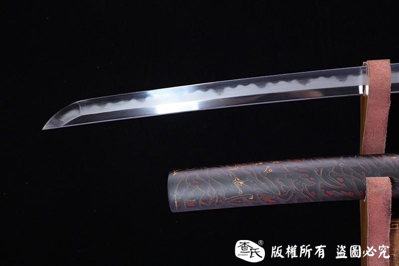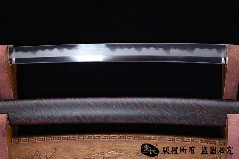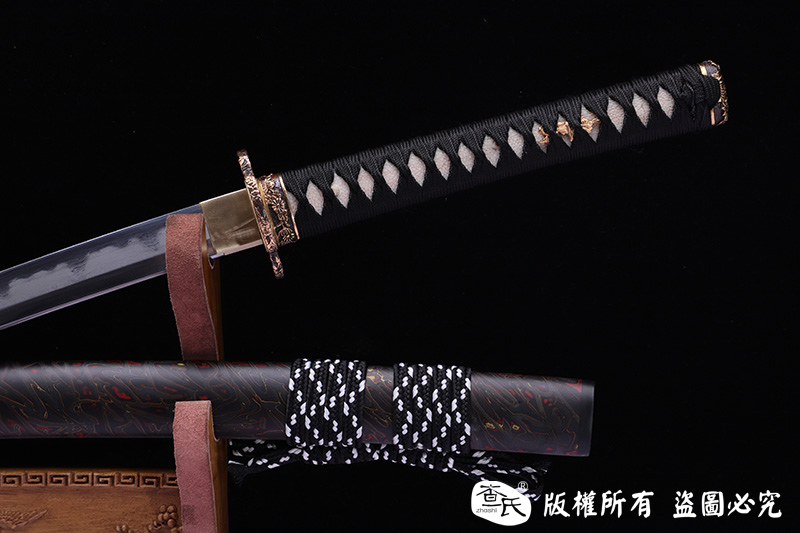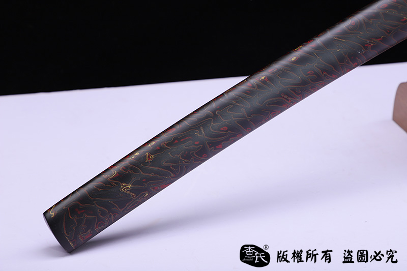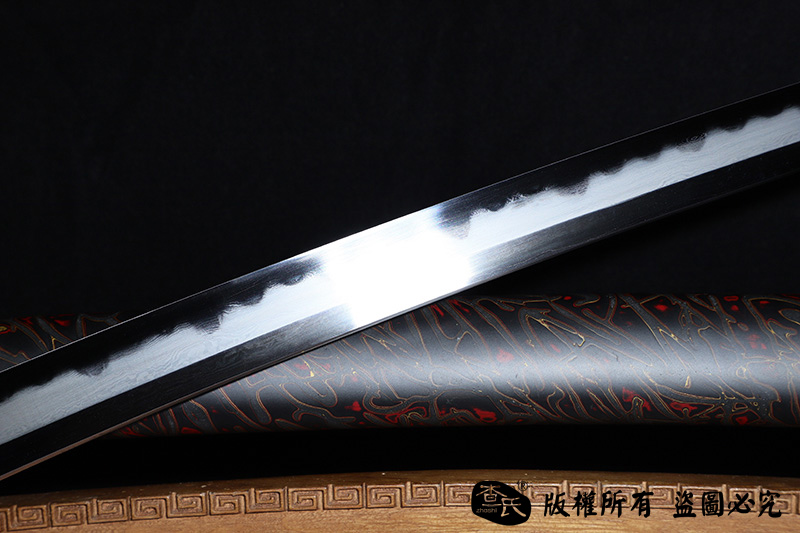【作品规格】 全长:103cm左右,柄长:26cm,刃长:72cm,刃宽:3.2cm,刃厚:0.7cm,重量:不带鞘1.0kg左右,带鞘1.3kg左右。