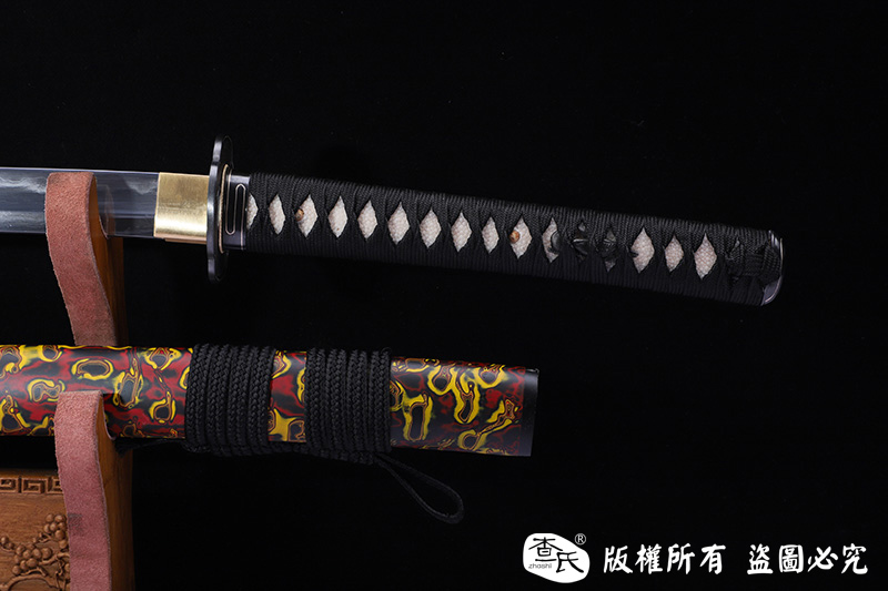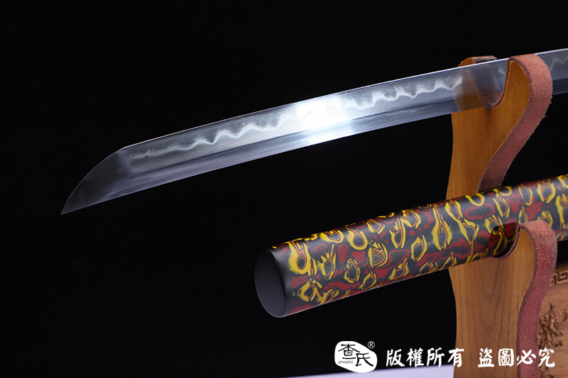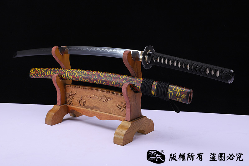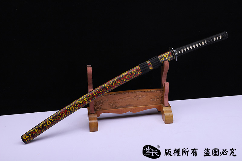 【作品规格】 全长:103cm左右,柄长:27cm,刃长:72cm,刃宽:3.2cm,刃厚:0.7cm,重量:不带鞘1.0kg左右,带鞘1.3kg左右。