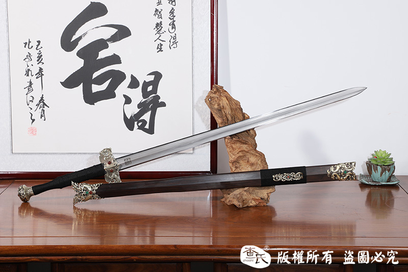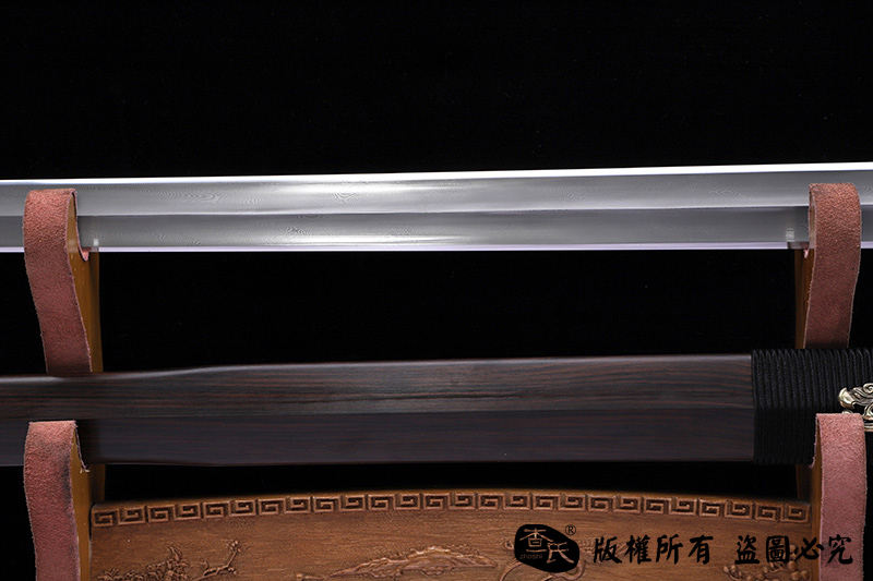【作品规格】 全长:118cm左右,柄长:27cm,刃长:81cm,刃宽:4cm,刃厚:0.7cm,重量:不带鞘1.1kg左右,带鞘1.9kg左右。