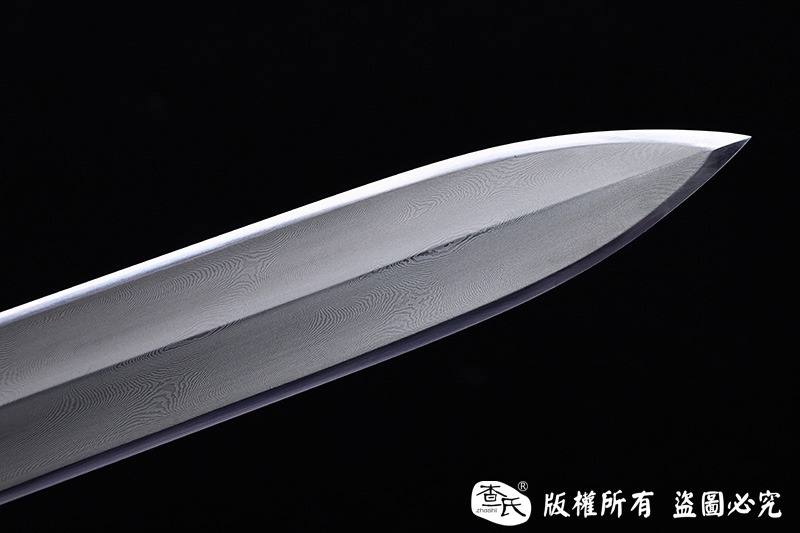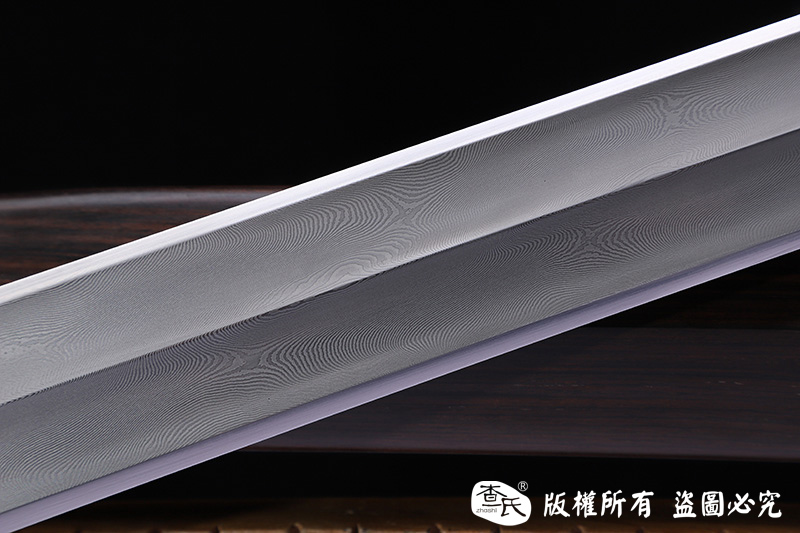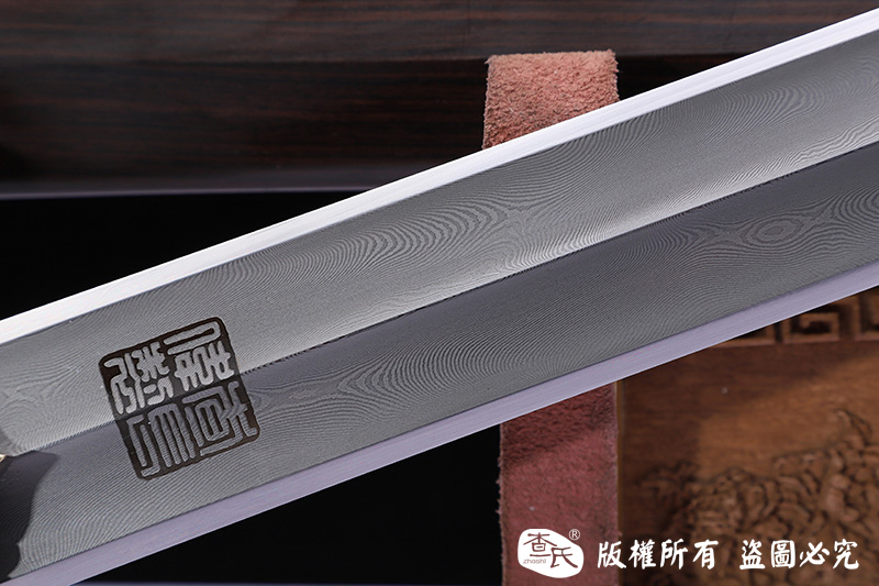 【刃材工艺】 禾字号百炼钢古法手工打造,古法热处理,手工瓦楞形剑樋,手工精细磨,性能优越,手感优越,根部刻字:查长伟制