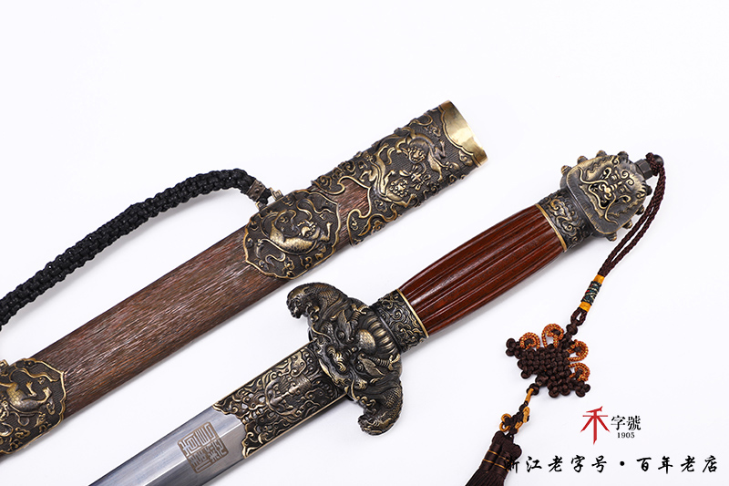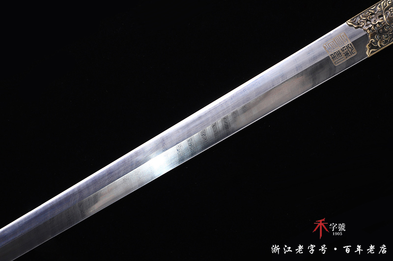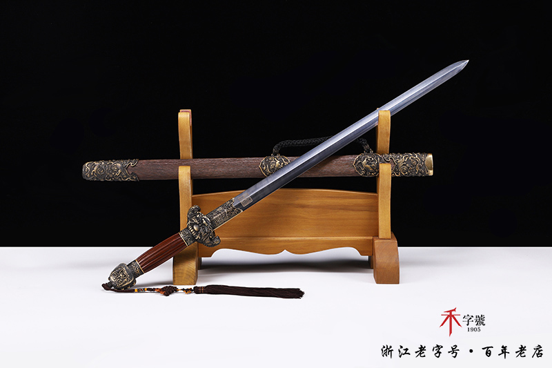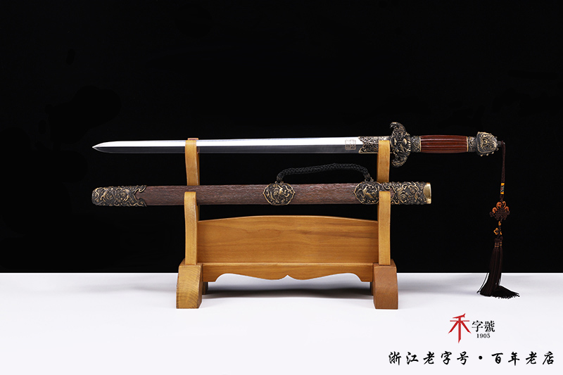 【作品规格】 全长:85cm左右,柄长:19cm,刃长:56cm,刃宽:3cm,刃厚:0.7cm,无鞘重:0.8kg左右,带鞘 1.5kg左右。【刃材工艺】 高难度手工混合毛铁锻造乾坤纹,古法热处理,手工精细磨,根部刻字:查长伟制【作品鞘材】传世雕刻铜鞘+木芯鞘【作品装具】 精细铜装雕刻【作品硬度】 58HRC【作品柄材】 名贵珍珠鱼皮+木芯【作品赠品】 锦盒 架子 配大师证书 保养油【其他事项】 手工产品,重量尺寸稍有误差,请以实物为准。赠品里面的架子并不是图上的展示的架子,图片架子另外加180。![]()