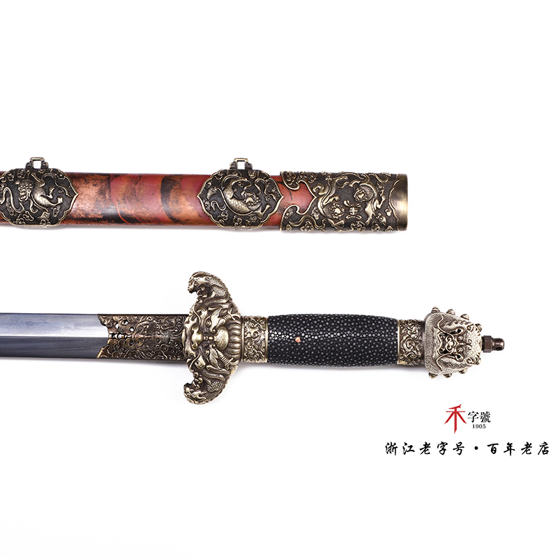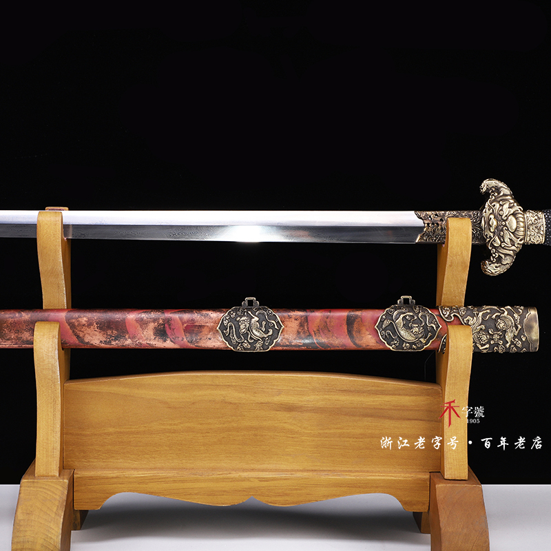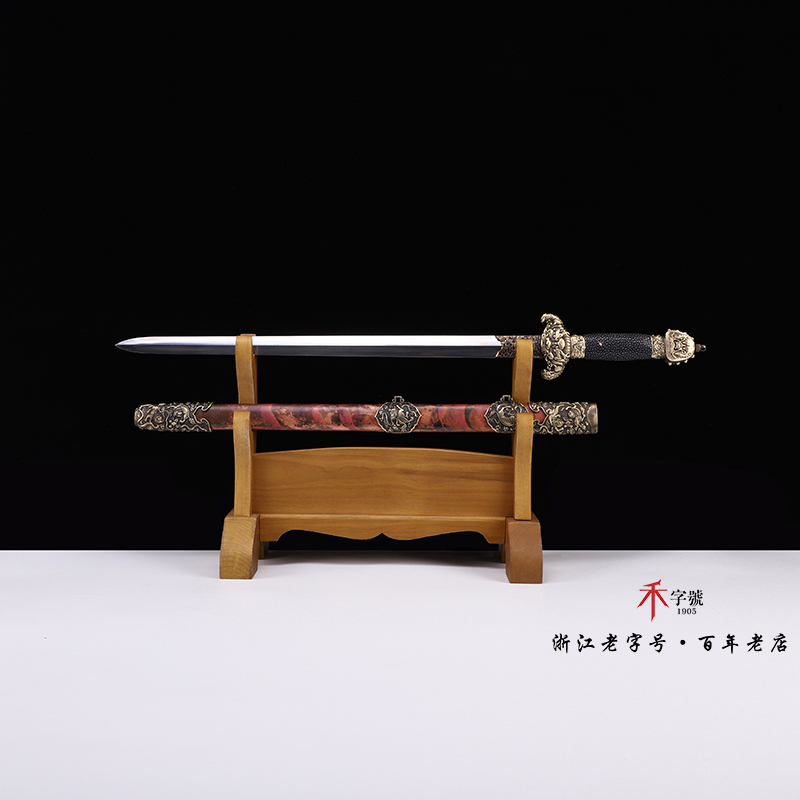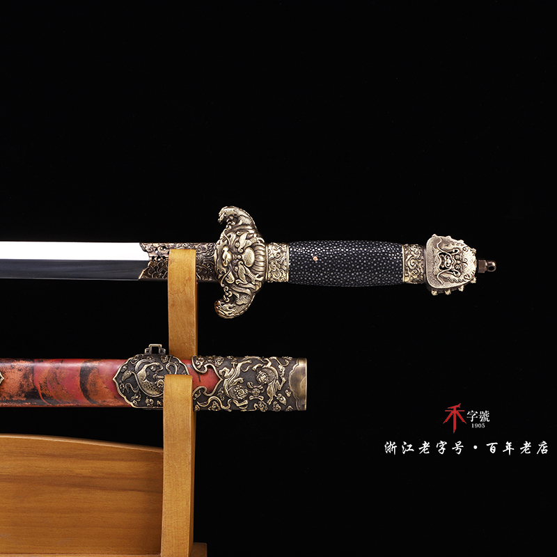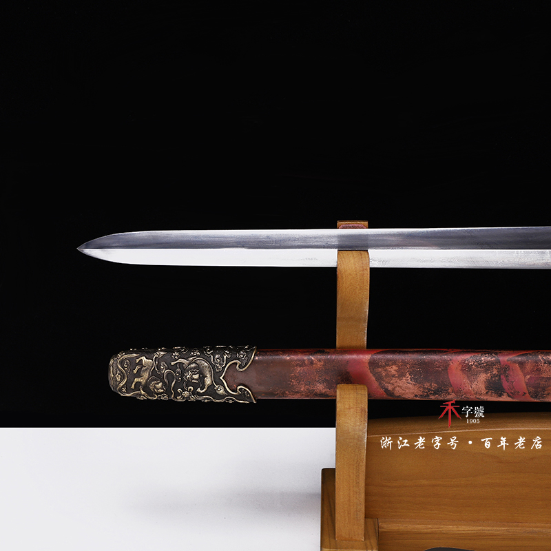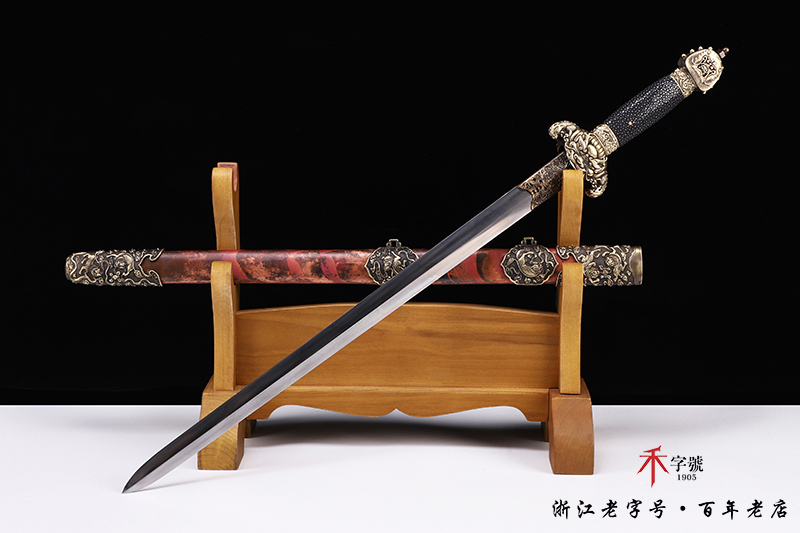 【作品规格】 全长:85cm左右,柄长:19cm,刃长:56cm,刃宽:3cm,刃厚:0.7cm,无鞘重:0.8kg左右,带鞘 1.5kg左右。【刃材工艺】 高难度手工混合毛铁锻造乾坤纹,古法热处理,手工精细磨,根部刻字:查长伟制【作品鞘材】传世水墨铜+木芯鞘【作品装具】 精细铜装雕刻【作品硬度】 58HRC【作品柄材】 名贵珍珠鱼皮+木芯【作品赠品】 锦盒 架子 配大师证书 保养油【其他事项】 手工产品,重量尺寸稍有误差,请以实物为准。赠品里面的架子并不是图上的展示的架子,图片架子另外加180。![]()