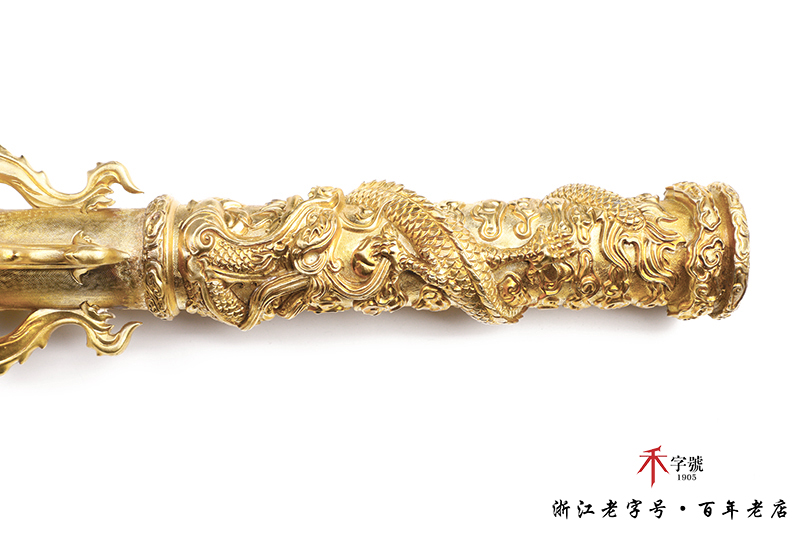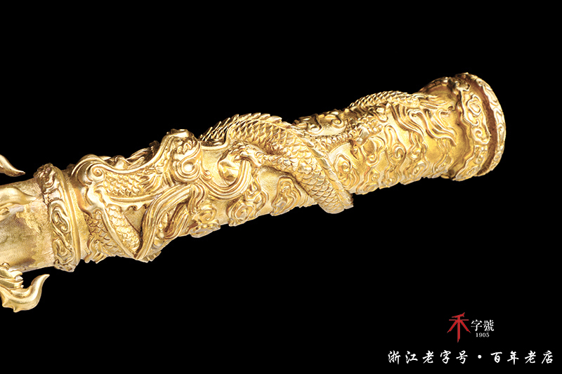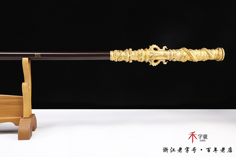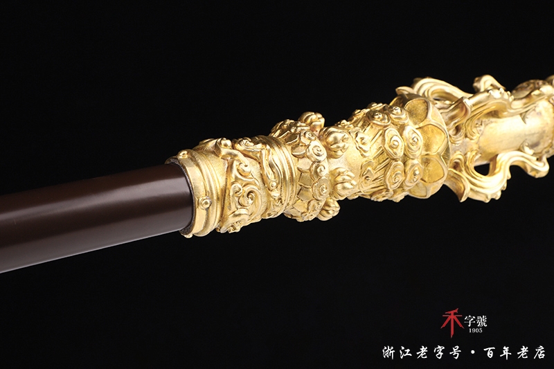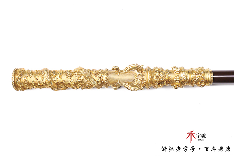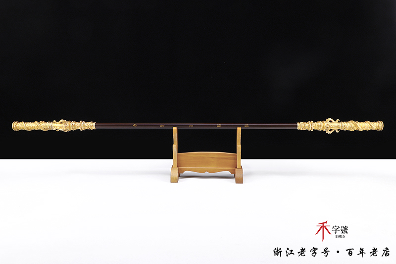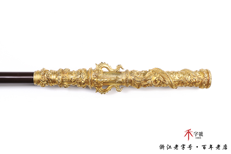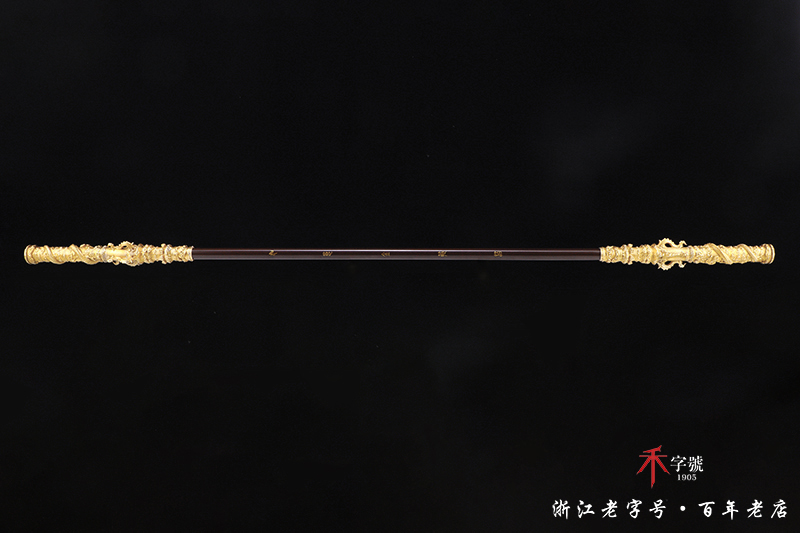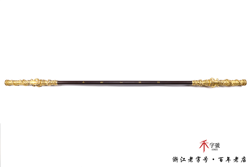 【作品规格】 全长:200cm左右,中间棍子长:110cm左右,中间杆棍子直径:3.2cm,两头雕花装饰头直径:5cm,总重:8.58kg左右。【制作工艺工艺】全手工雕刻精细的铜装(市面上的都是普通铸造铜),棒身是坚固不锈钢打造,烤漆处理,手工描金字。这个可以说是金箍棒中的大哥了。这个黄铜装具并没有镀金是,是黄铜本色,时间长了是会氧化正常的。【作品赠品】 锦盒 架子 证书【其他事项】 手工产品,重量尺寸稍有误差,请以实物为准。赠品里面的架子并不是图上的展示的架子,图片架子另外加180。![]()