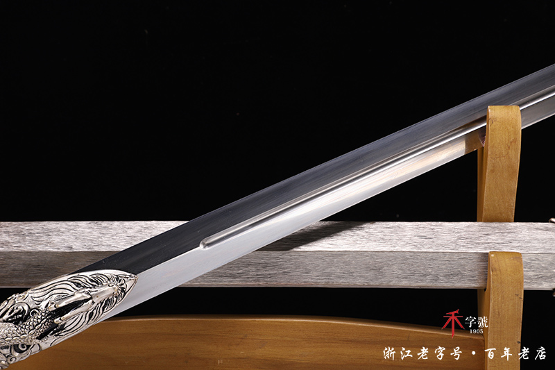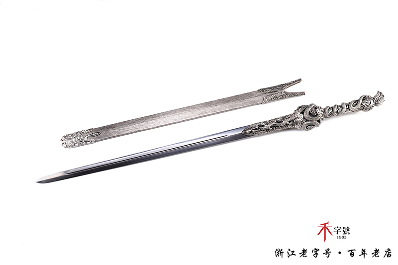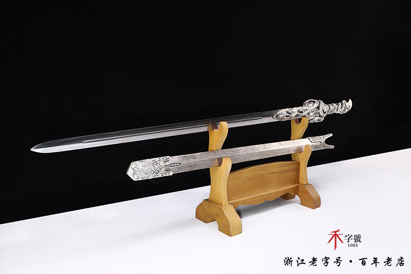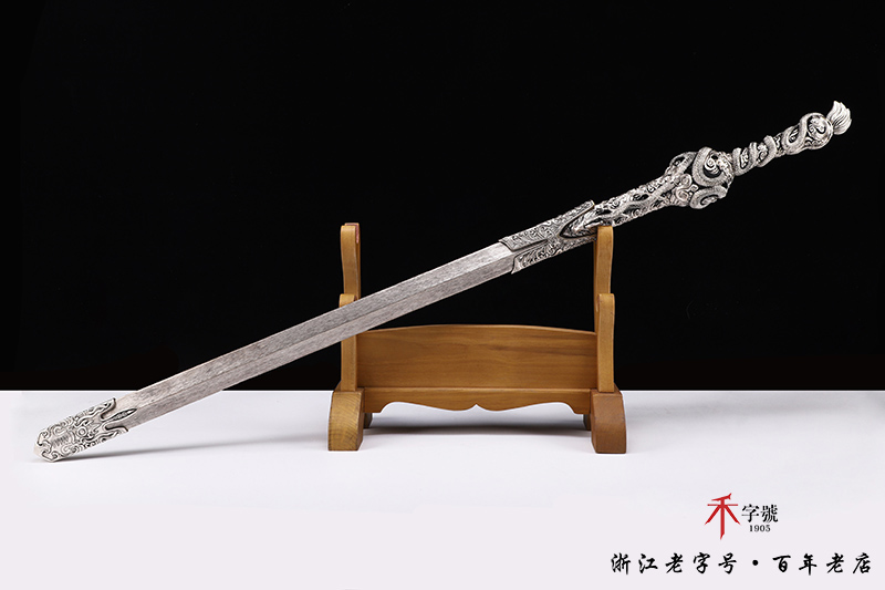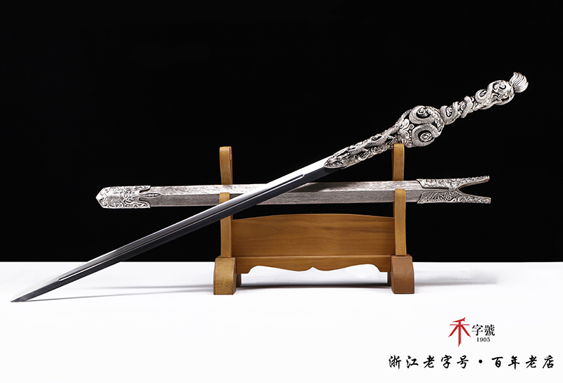 【刃材工艺】 龙泉禾字号手工锻造龙腾纹百炼钢,古法热处理,手工精细磨,锻造纹路就像一条龙一样盘在剑刃上,非常精美,根部刻字:查长伟制【作品鞘材】 手工雕刻铜鞘+镀古银【作品装具】 手工高难度高浮雕精细铜装+镀古银【作品硬度】 58HRC【作品柄材】 手工高难度高浮雕精细铜装+镀古银【作品赠品】 锦盒 架子 配大师证书 保养油【其他事项】 手工产品,重量尺寸稍有误差,请以实物为准。赠品里面的架子并不是图上的展示的架子,图片架子另外加180。![]()